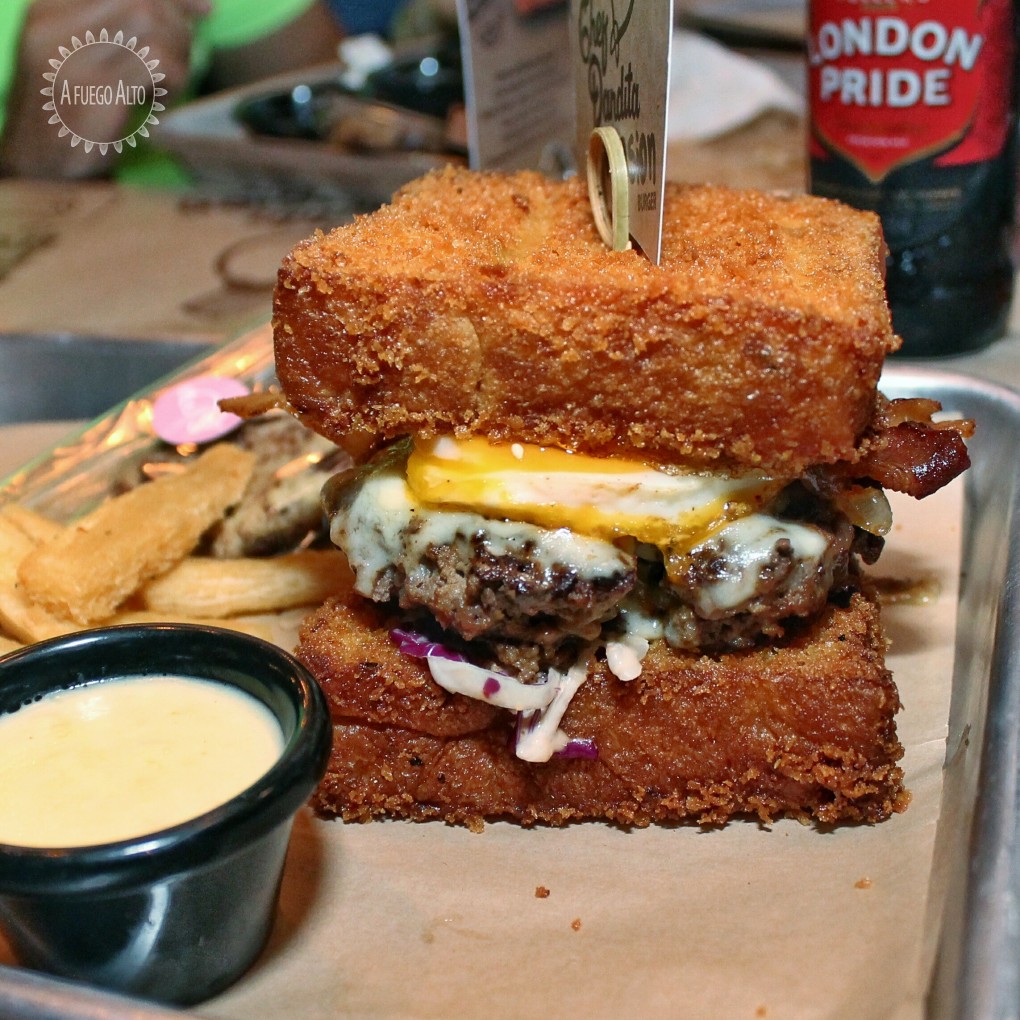 Particularmente me parece que la arquitectura del burger dificulta (por no decir imposibilita) una mordida en la que todos los ingredientes estén presentes, es enoooorme. El pan brioche queda crocante con buen sabor pero con mucha grasa. En el interior los ingredientes llegan a comunicarse por momentos (no siempre) y el saborcito del pepper jack y del coleslaw son de lo mejor en este burger. En este caso me gustó el huevo y me gustó que no tuviera la yema blanda (me encantan con la yema blanda) para hacerlo menos «messy». En este caso la carne llegó un poco más cocida de lo ordenado (la pedí 3/4) pero nada que desmeritara el burger.