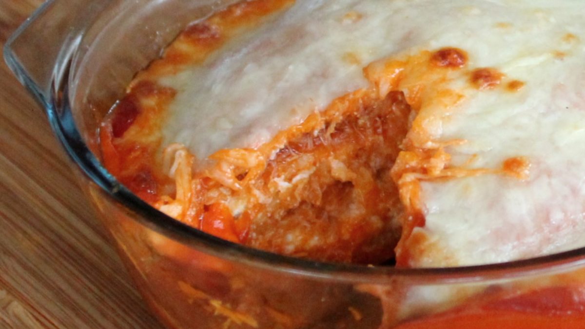 - En un recipiente resistente a horno armar la lasagna así: disco de masa de catibía, cangrejo guisado, disco de masa de catibía, queso ricotta, disco de masa de catibía, queso mozzarella, disco de masa de catibía, cangrejo guisado … y así hasta conseguir la altura del recipiente